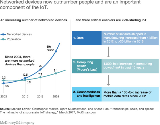 In 2010, people owned 12.5 billion networked devices; it is estimated that by 2025, that number will have climbed to more than 50 billion. Growth in Connected devices will only help get better data samples to build models based on the IoT and make IoT more reliable and effective.